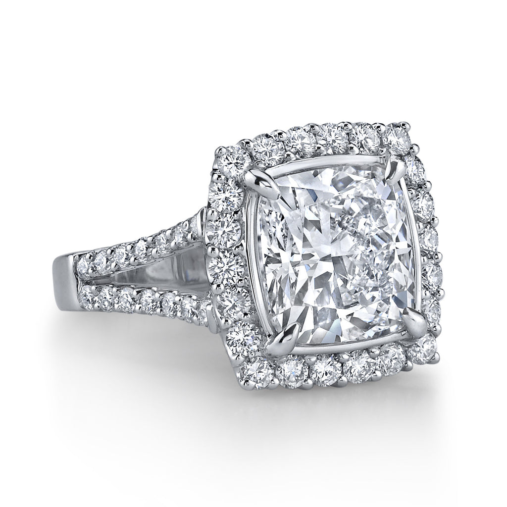 Dazzling Cushion E IF diamond weighing 3 carats surrounded with round brilliant diamonds weighing 1.50 total carats mounted on 18k white gold. *Price is for ring only. Center diamond sold separately.